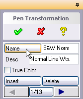 Select the Pen Transformation button in the Plot menu followed by the "Name" button in the Pen Transformation menu to access these pre-defined pen transformations.