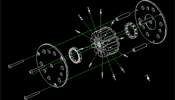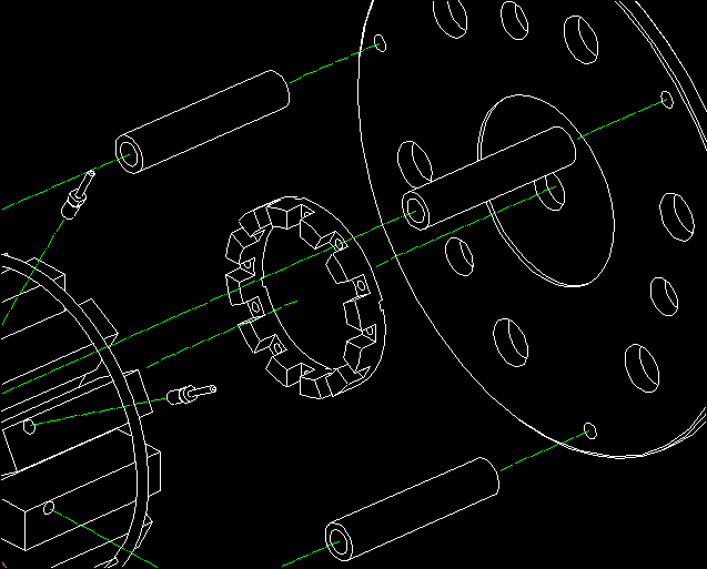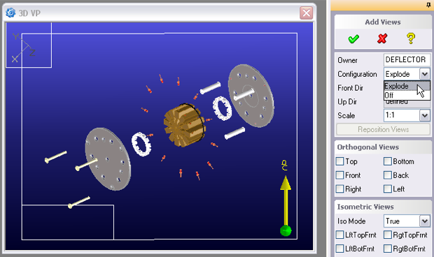 Once you have created and updated the exploded view, it is common to place extension lines showing the assembly axes. There is a convenient command in Annotation for this called the Symmetry line which is available in the Auxiliary Geometry menu.