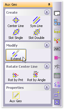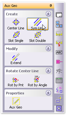 Use the Sym Line command and click on opposite parallel edges of a component, for instance the sides of fastener shafts. Then use the Extend command to draw the symmetry line ends to any position you like.