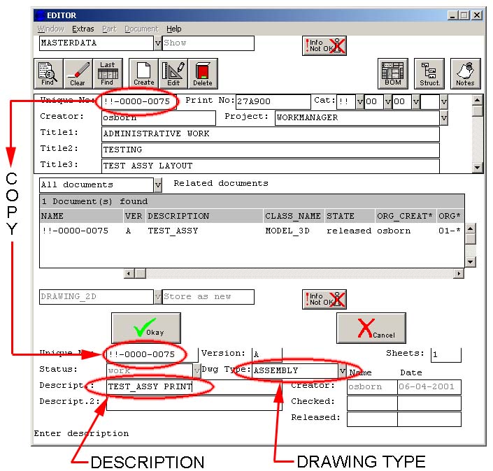 If desired, modify the Description field and/or the Drawing Type in the document editor and hit Okay.