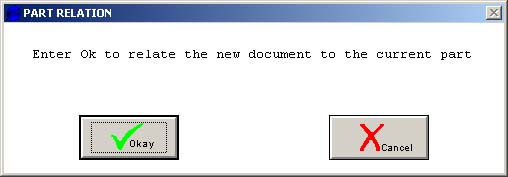 - A dialog will pop up asking: Okay to relate the current document to the current part? Hit the Okay button to
