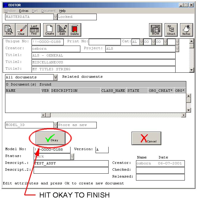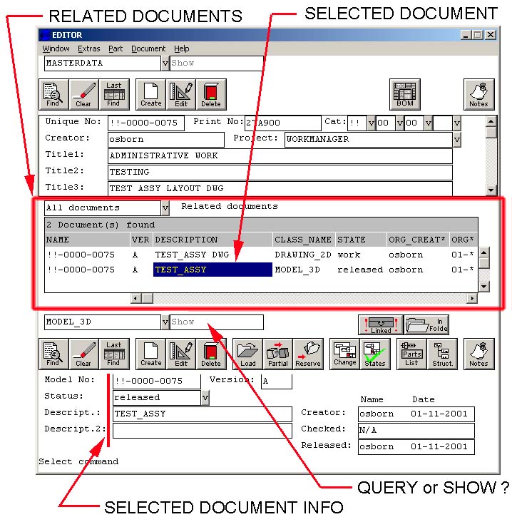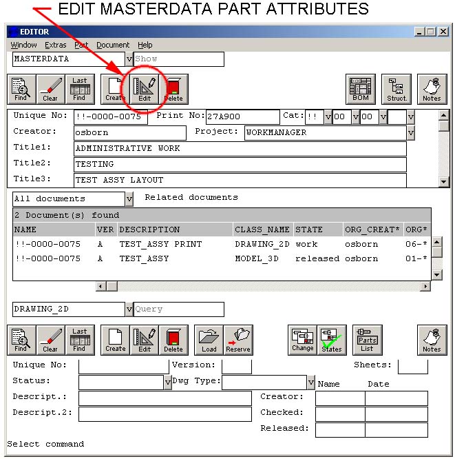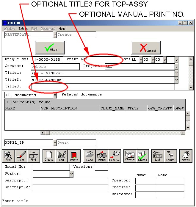 to the 3D part or assembly which owns your print. Relating the 2D print to this masterdata part ensures that the print will show up in the related documents for this masterdata part.