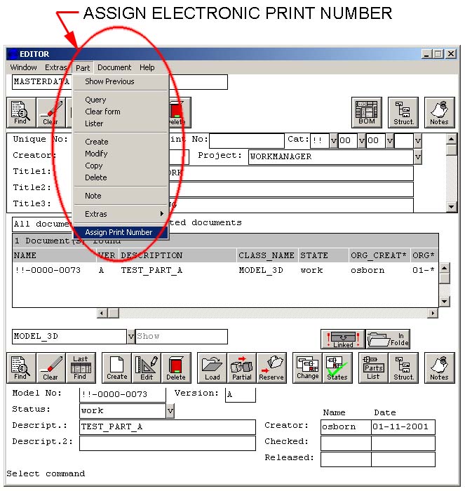command from the Part menu to assign the next available print number for your project. A number will