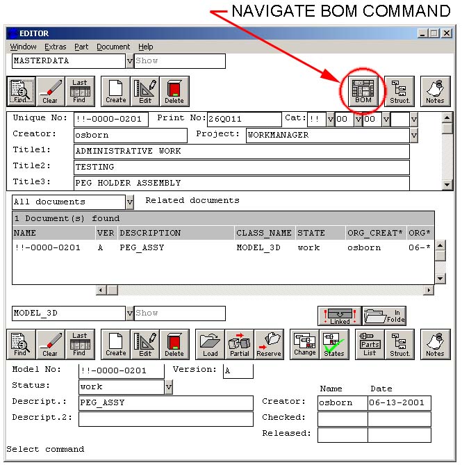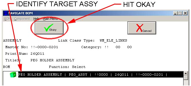 - In WorkManager, use the Navigate BOM button for the target assembly as discussed above in Creating a BOM.