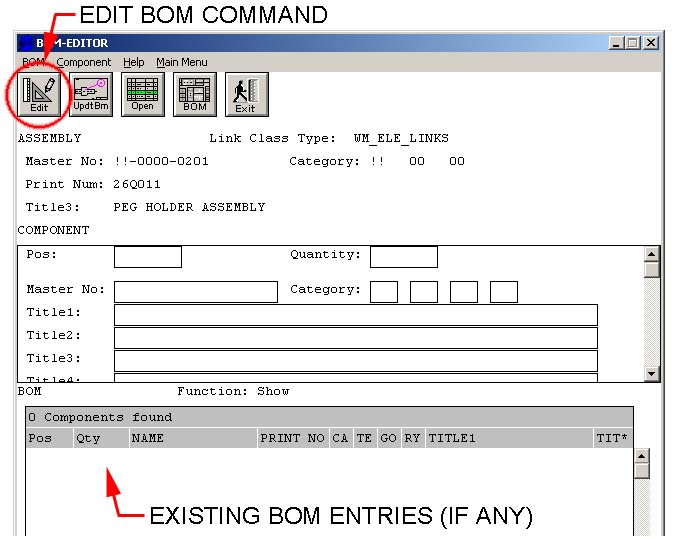 - The BOM Editor appears listing any existing BOM entries. Use the Edit button to make changes to your