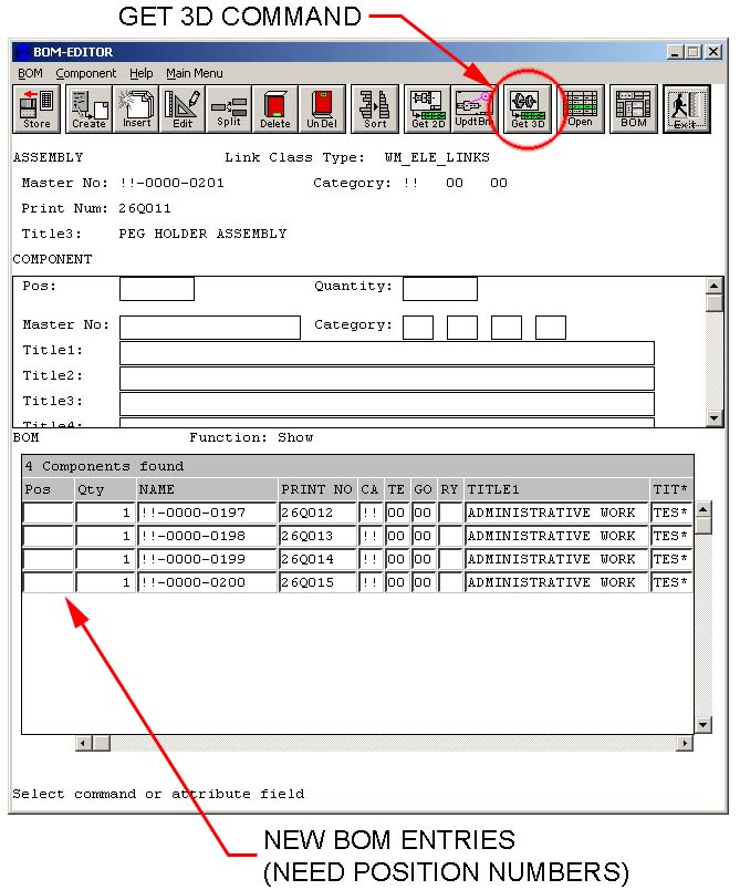 assembly must be loaded from WorkManager into SolidDesigner for the Get 3D command to function properly. New BOM entries are added to your