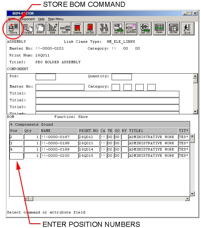 - Once you have entered all your numbers, use the STORE button to save your BOM changes back to the database. WorkManager changes
