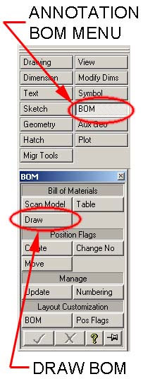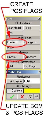 - Use the Update command to update your BOM table and position flag numbers. This command will update the REQD number, the ITEM