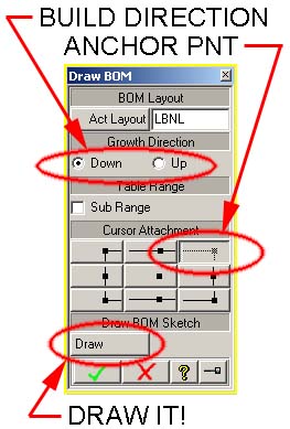 - Specify the Build Direction, Anchor Point, and hit the Draw button. Place the BOM table on your drawing