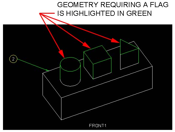 still requires a flag is highlighted in GREEN; geometry that already has a flag or has no BOM entry will highlight in RED when you identify