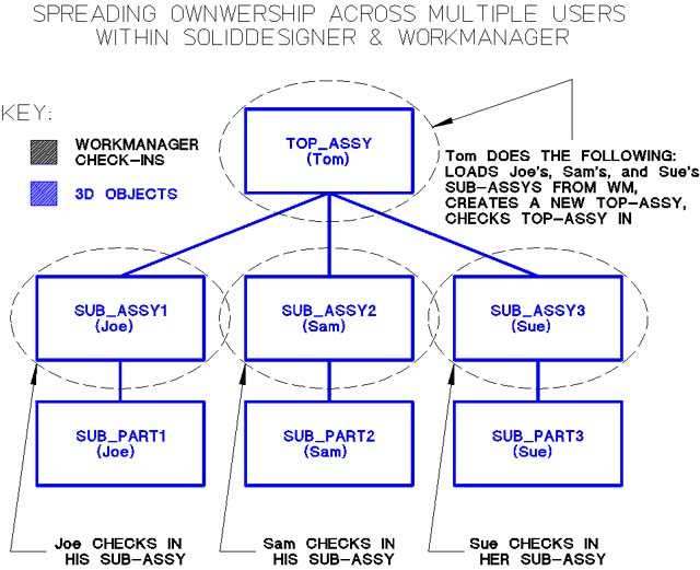 be spread over different users while the entire assembly is still linked together.