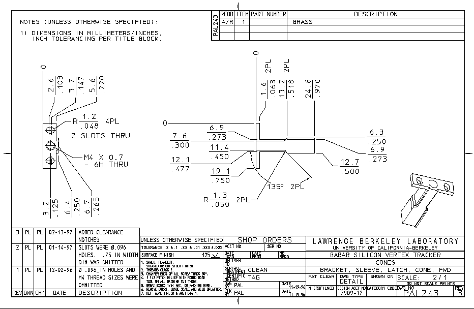 PAL243 BRACKET, SLEEVE, LATCH, CONE, FWD --> gif dxf