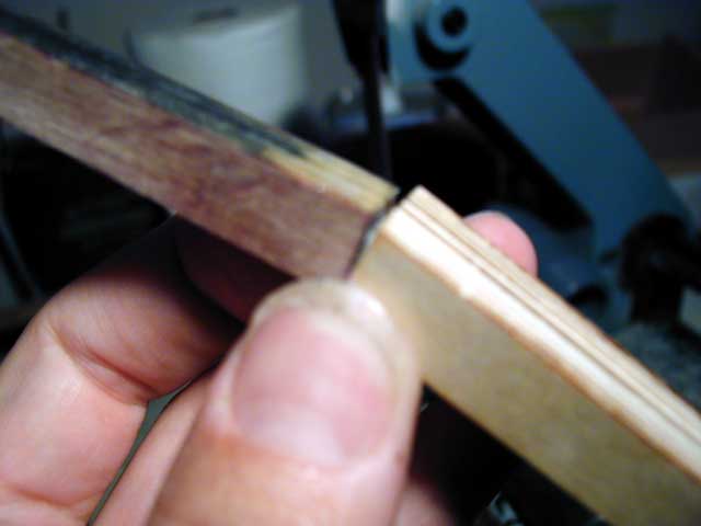 Cut four pieces of 1/64 inch plywood for the full height sides of the joiner rod,