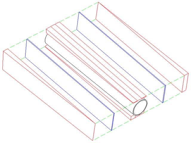 Note in the figures below: the joiner rod assembly is shown up side down for clarity. The joiner tube assembly is shown with the 1/8 inch extra side plies already tapered. In fact this tapering is done after the tube assembly is completed, before the tube assemblies are installed during the center panel build sequence. While building the tube assemblies, these side plies are left full thickness.