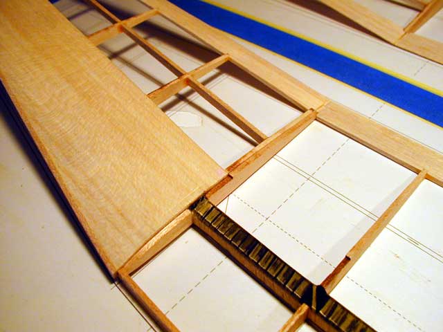 Take this opportunity to use a scrap of balsa to wipe the splooge from all corners where the webs and ribs meet.