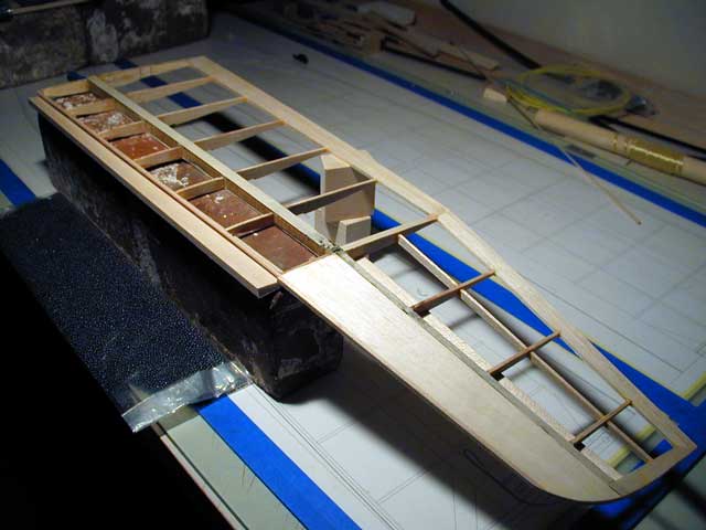 Once the Titebond has setup so that the lower sheeting won’t move, strip and glue in the balsa fillets.