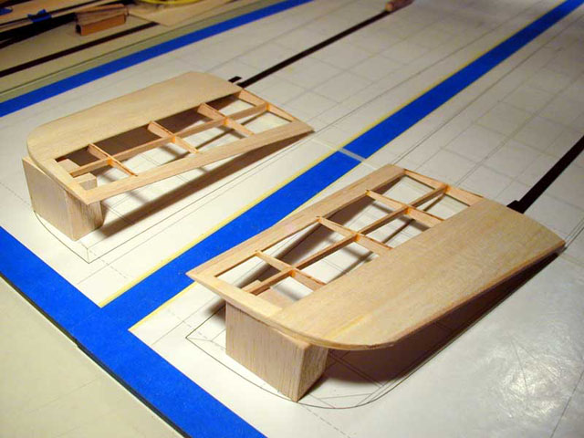 Use a jig to sand the ends of the webs so that they have the correct sweep angle to match the plans. Do a dry fit as you go to make sure the pieces conform to the plan.