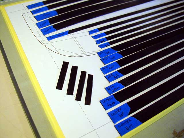 3. Cut .014" Mylar strips for the bottom spar cap pieces. Make them an extra inch long to support the lower spar cap carry through segments.