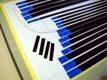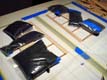 2. Sort and cut carbon spar material. Note bottom caps are cut to length exactly as on the plan. Top spar caps are shorter based on the dihedral breaks (6 degree half-angle outer break, 5.5 degree half-angle inner break). Use a Dremel cutoff tool for cross cuts and a single edge razor blade with multiple light passes and a straight edge for lengthwise cuts. Note that the mid and tip panel spar caps are not cut off at right angles; follow the wing plan to obtain the correct angle. The Wing Spar Materials document summarizes the distribution of the carbon materials. Use masking tape and a marker to identify the pieces.