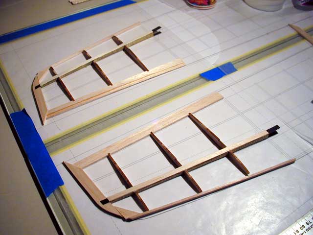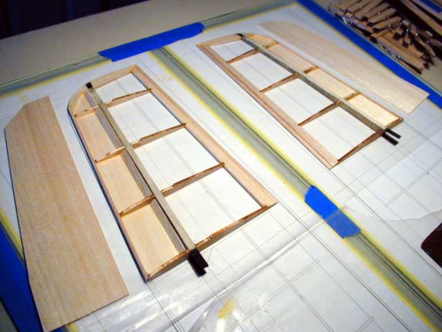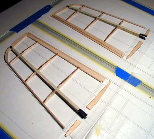 This completes the tip panel building sequence. All that remains is final shaping and covering. Continue building the mid panels at this point. These built tip panels will be jigged up to the correct dihedral and glued into the mid panels as they are built.