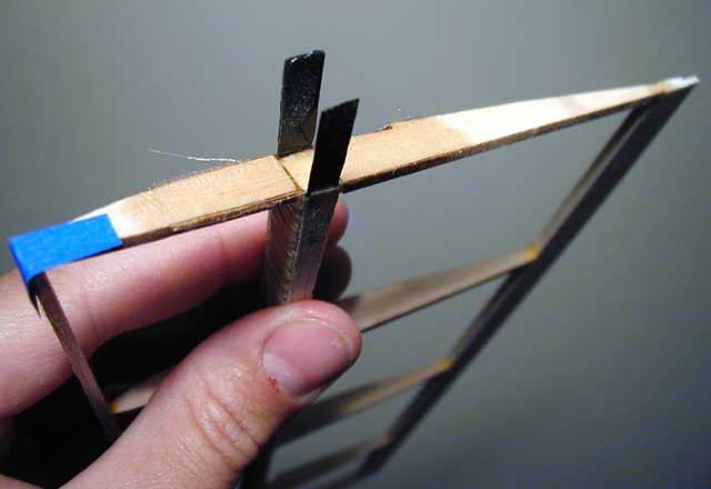 Create and bevel the lower edge of the inner LE strip from 3/32 x 2 x 36" stick. See Mark's Contruction Tips #2 for more details on the inner LE strip installation.