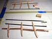 Cut the second piece into 3 pieces with 16" lengths. The two ends are for the bottom spar caps of the mid panels. Use the plan to obtain the correct cut off angle. The center length is used for the wing bolt beam.