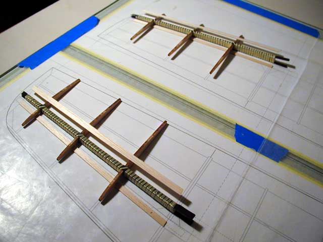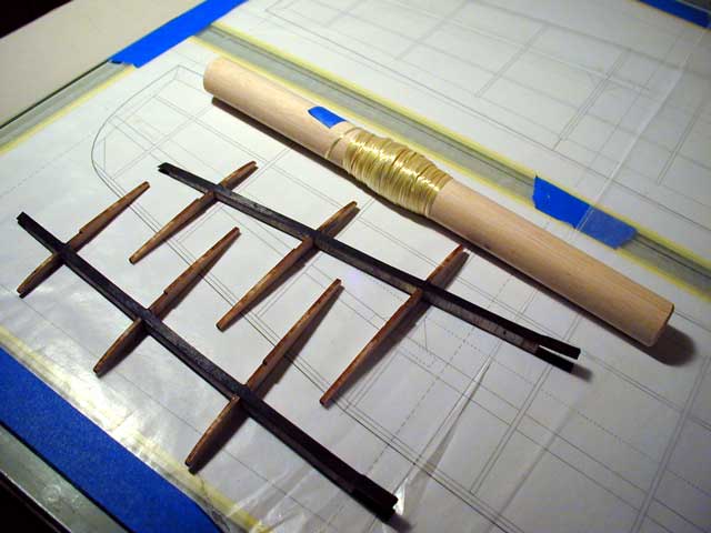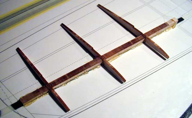 Use a jig to sand the ends of the webs so that they have the correct sweep angle to match the plans. Do a dry fit as you go to make sure the pieces conform to the plan.