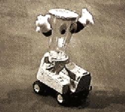 Blender Magazine, a multimedia periodical, had a feature article in Volume 1.5 about Robot Wars 1995. The article included a ficticious face-off between a robot called "Blendie" and The Mulcher. Blendie was literally a household blender appliance converted for battle with a small RC car kit, complete with toy arms and a foam-dart launcher. Can you guess which robot won from Blendie's picture below?