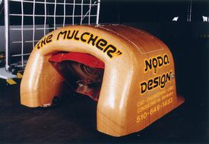 The Mulcher is a fighting robot that was designed to compete in Robot Wars 1995. The Mulcher consists of a gas-powered lawnmower platform which has been mounted at a 45 degree angle between two electric-motor powered tank-tread assemblies. The whole shebang is then enclosed in a Kevlar composite shell to protect The Mulcher's delicate electronics and provide a tapered tail to "wedge" under other robots.